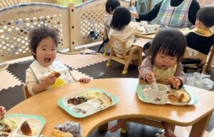 地元の食材を活かしたメニューや様々な活動に関連した食育活動など、安心安全な給食を栄養士の指導管理のもと園独自の献立で実施致します。また、離乳食やアレルギー食にも個別に対応致します。